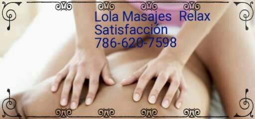Lola 👏tomate un buen tiempo para relajar tu cuerpo soy masajista matriculada y te atiendo en mi departamento personal confortable para darte un buen Masaje de Relax muy complaciente con satisfacion adisionalSoy cuidadosa y se lo que hago tengo licencias puedes darte una ducha antes o despues de realizarte el masaje que te guste☎llamar al ☎ escort-ad-7598 • phone flagged • why?☎👍➖🚫 NO estoy afiliada con ninguna agencia de la ley 🚫Rates✔80hhr/100 hour✔ llamar ANTES 📞👍para Un Buen Completo y único masaje de Relax👍👋